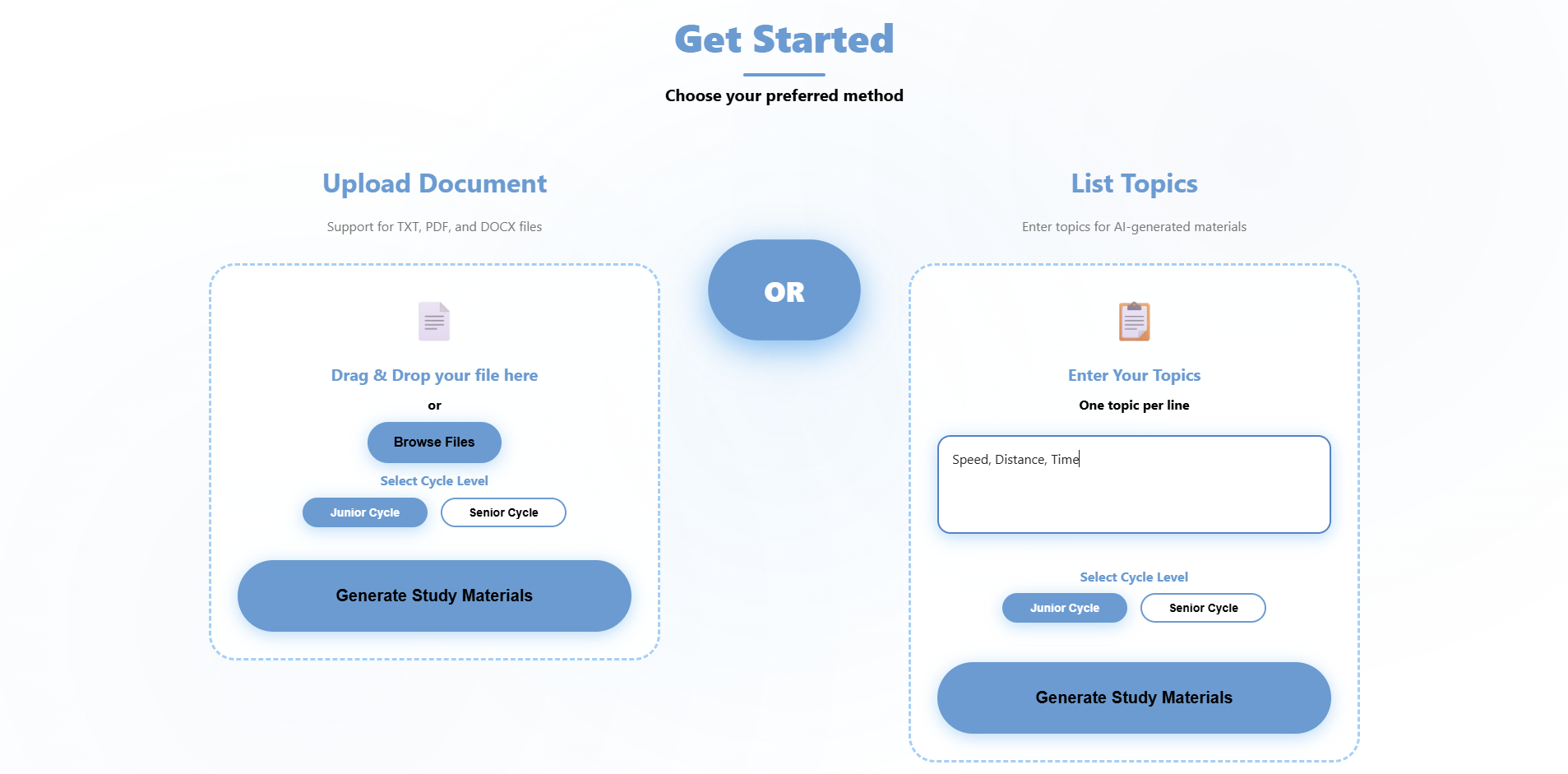 Students can easily upload their study materials in various formats. Our intelligent system processes handwritten notes, PDFs, text documents, and even images to extract key information.